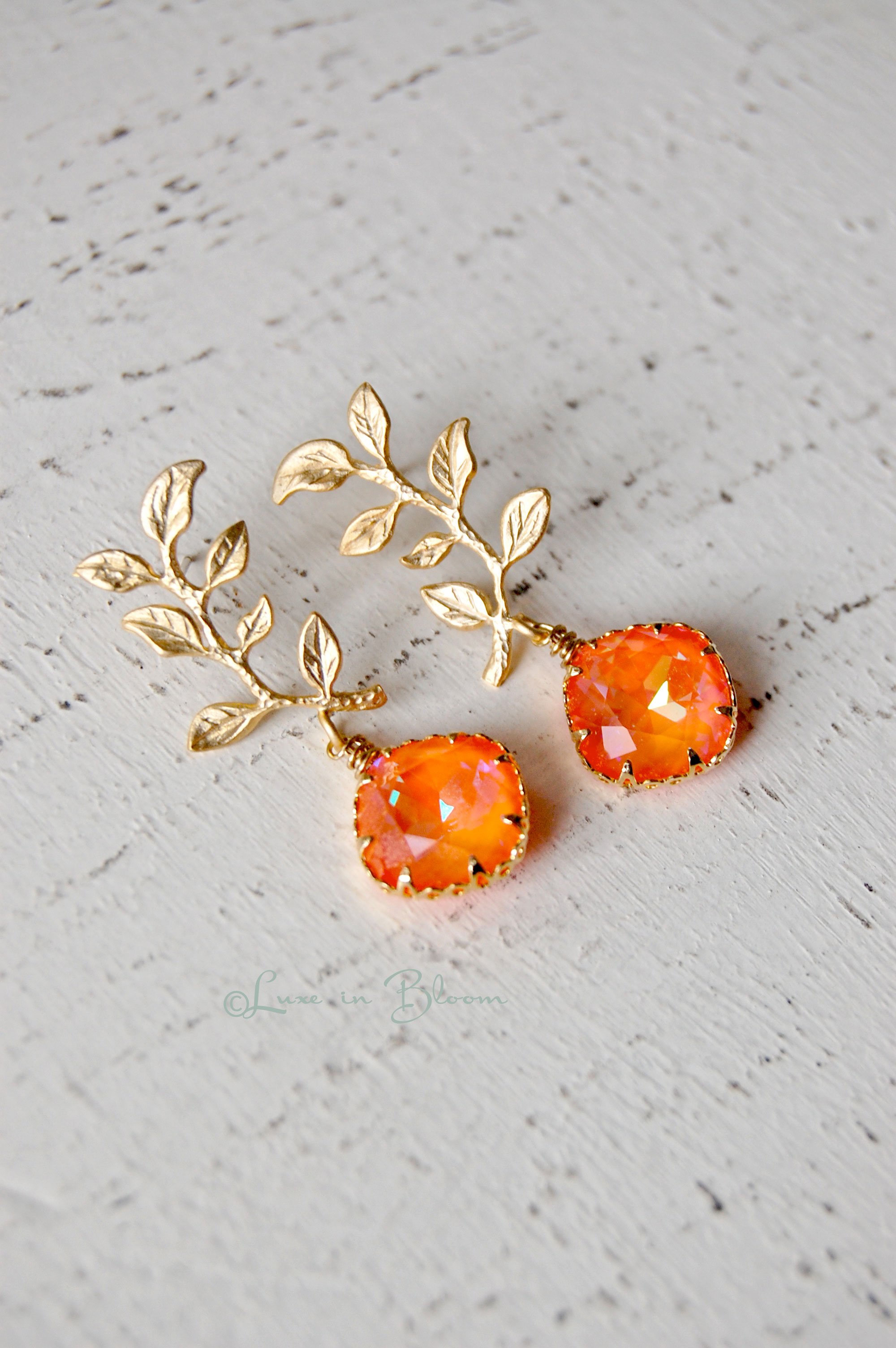 Bridesmaid Wedding Earrings in Ultra Orange Swarovski Crystals - Style #E170 : Luxe in Bloom