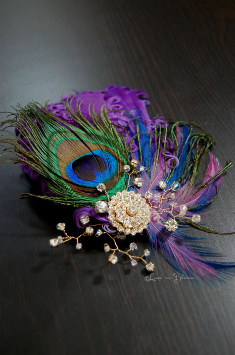 Bridal Head Piece Purple Blue Feather Fascinator - Style # FF111