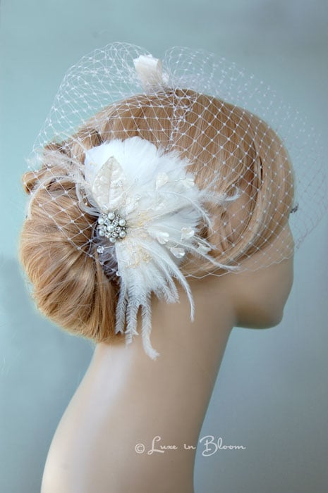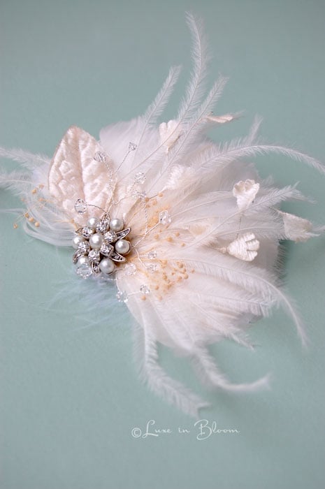 Bridal Feather Hair Piece Vintage Inspired : Luxe in Bloom