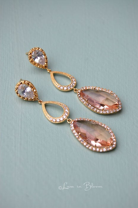 Chandelier earrings in champagne and gold are wonderful for any special occasion.