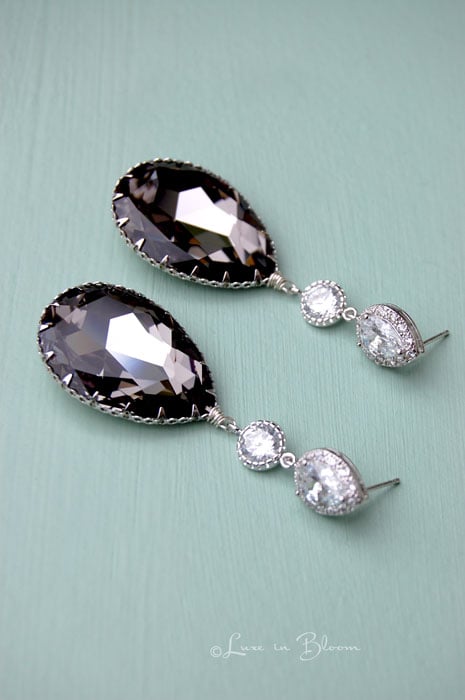 Wedding Earrings In Black Diamond Swarovski Crystal - Style # E153-BD