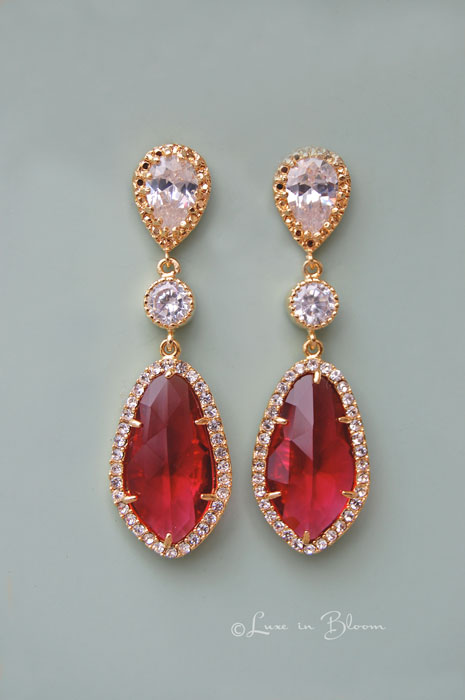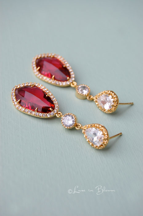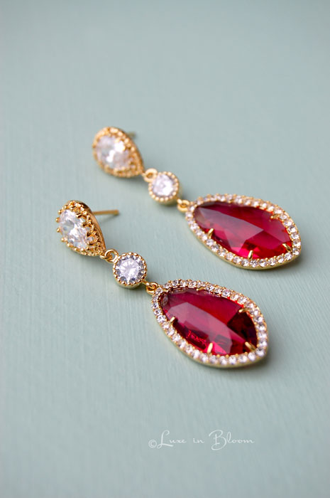 Chandelier Wedding Earrings In Red Czech - Style # E156R : Luxe in Bloom