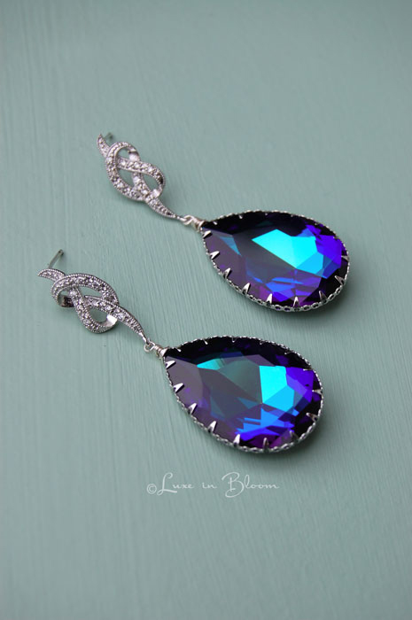 Large Bridal Earrings In Heliotrope Swarovski Drops- Style # E159-H