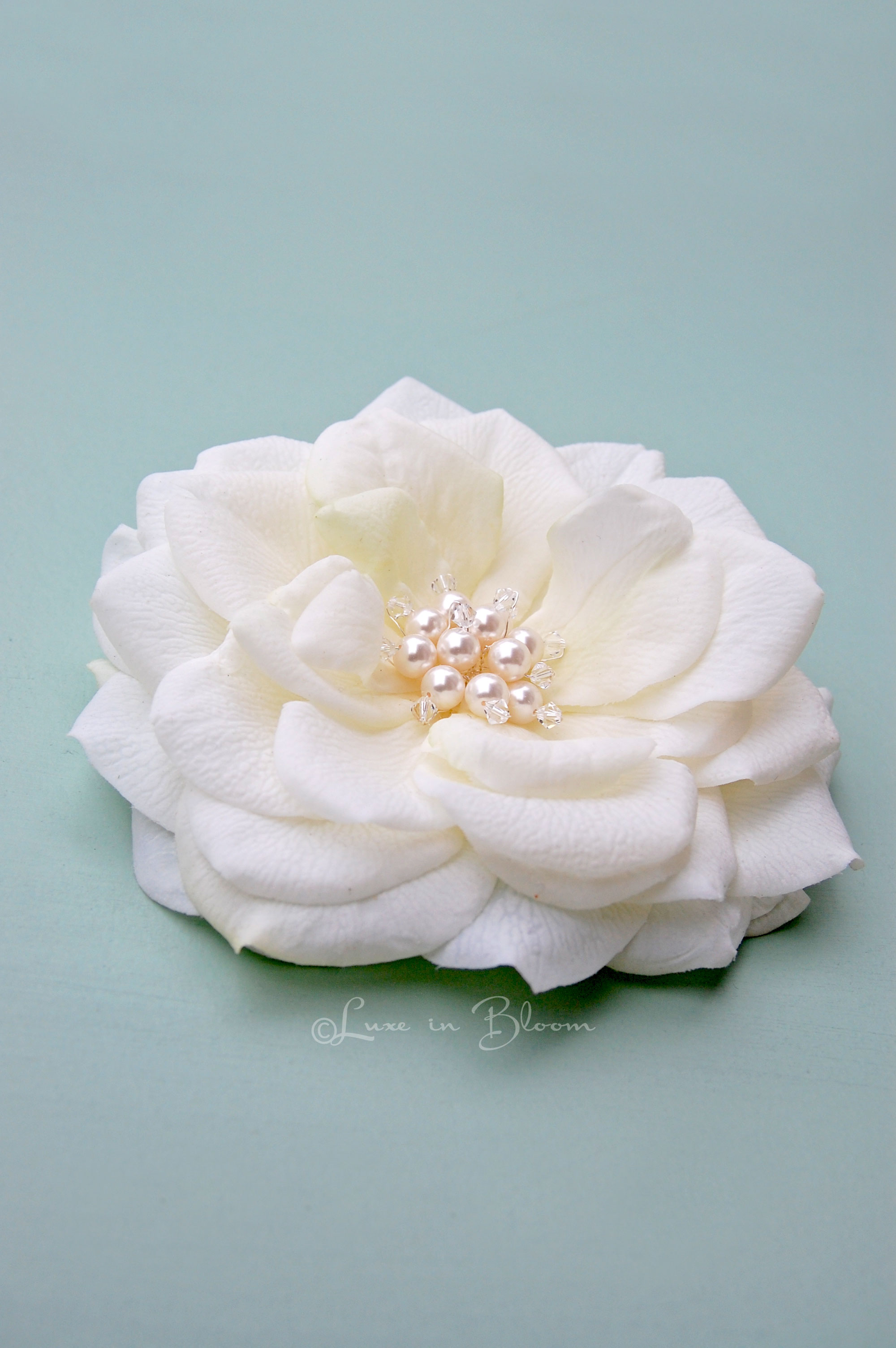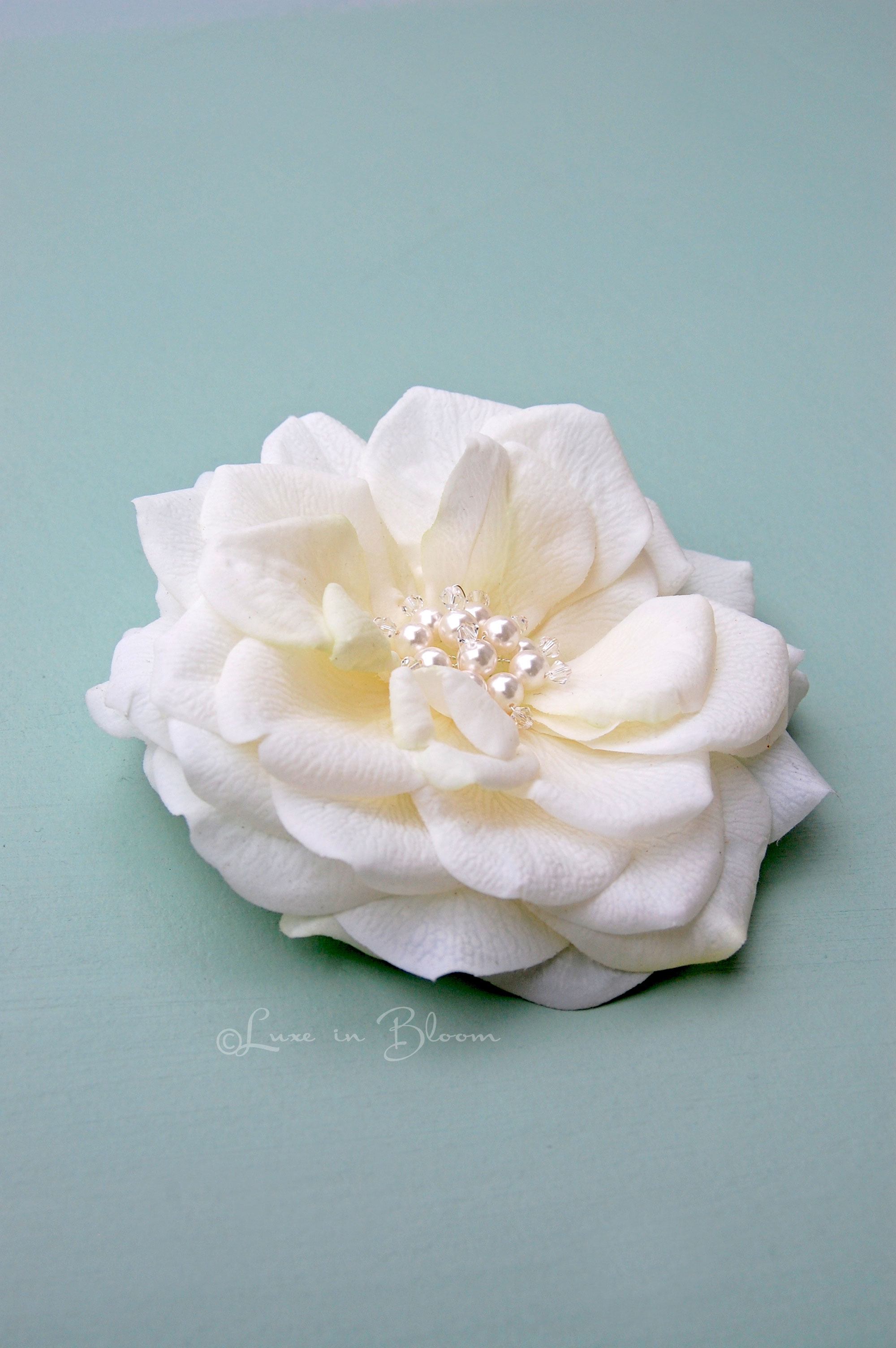 This elegant realistic light ivory flower creates an illusion you are wearing a REAL flower.